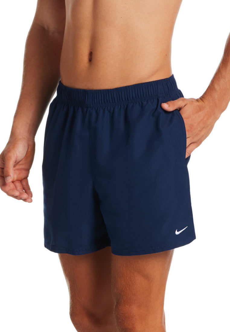 Nike Swim Men's Essential Lap 5" Volley Short has a durable water repellent finish to speed up the drying process when you're ready to head out for lunch. A built-in mesh brief and mesh pockets add valuable extra support and storage space to the swimming trunks. The sleek men's swim trunks have a secure elastic waist with a drawcord, so you can count on them to stay in place through each lap.