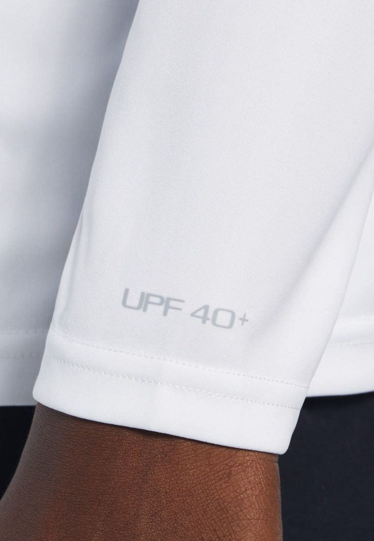 Don’t sacrifice your style for the sun. This bold tee serves both a bold look and UV protection. With Dri-FIT technology and 40 UPF, you’ll be dry, comfortable and protected all day. The bold logo paired with micrographics will keep you looking fly. Don’t forget to throw one in your pool bag.